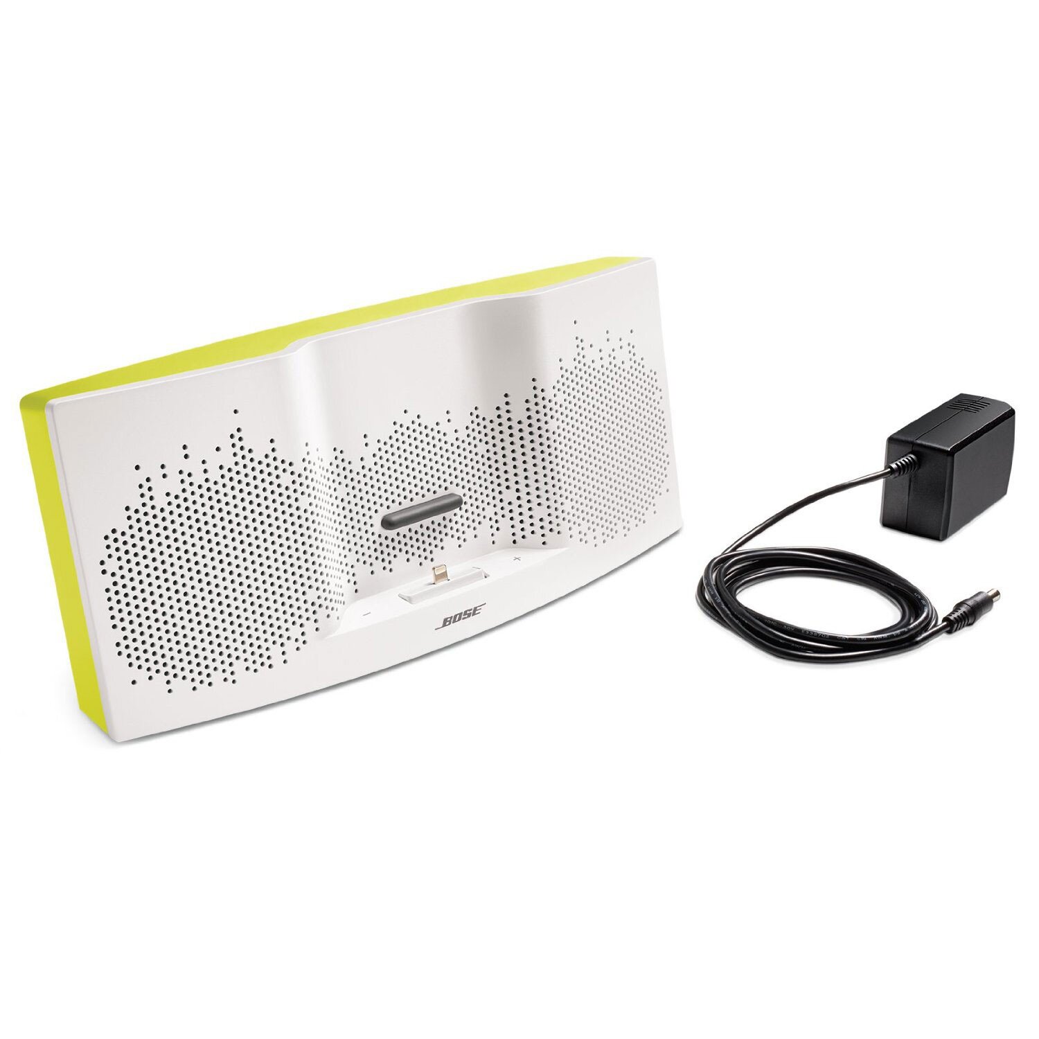 The integrated dock gives the speaker a small footprint, so it takes up minimal space. And it's lightweight, so you can easily move it from one spot to another. Choose from White/Dark Gray or White/Yellow to suit your style.