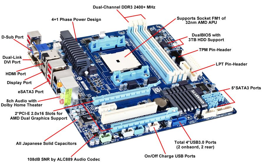 Designed to leverage the awesome potential of the latest AMD Fusion A-series APUs, GIGABYTE motherboards deliver an enhanced visual experience that includes advanced DX11(R) gaming, incredibly smooth HD multimedia playback and support for high resolution displays of up to 2560 x 1600 pixels by Dual-link DVI port.