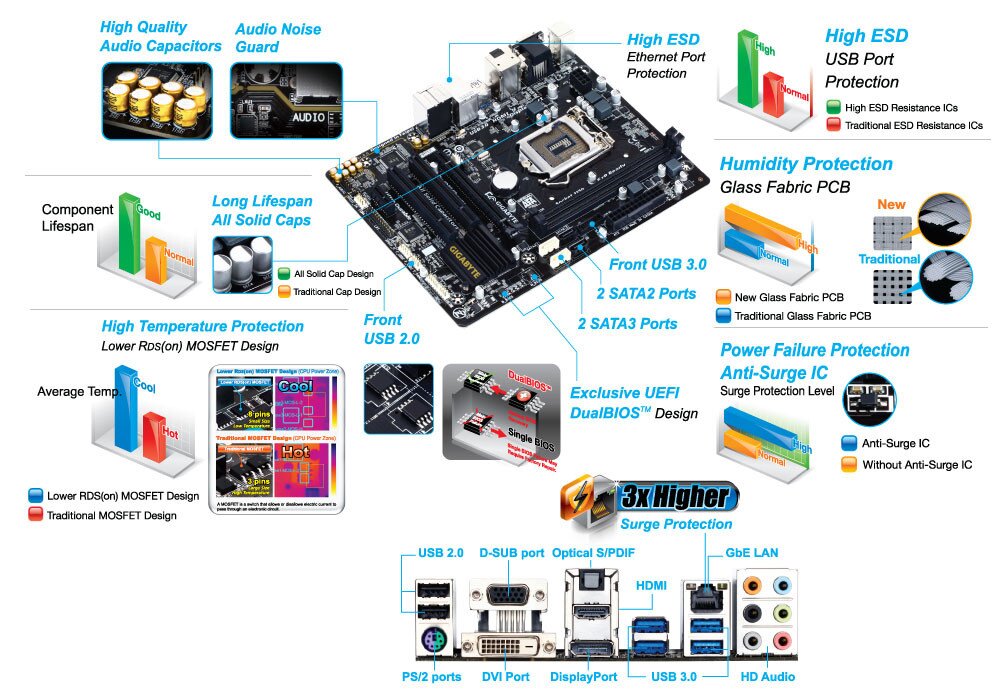 GIGABYTE motherboards feature High Resistance ICs which help protect the motherboard against electrostatic discharge.