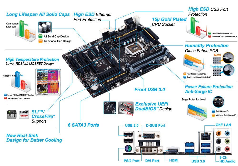 GIGABYTE Ultra Durable debuts on GIGABYTE motherboards, with a range of features and component choices that provide record-breaking performance, cool and efficient operation and extended motherboard lifespan.
