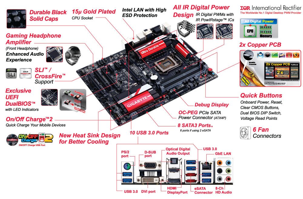 GIGABYTE 8 Series motherboards support the latest 4th Generation Intel Core processors, bringing together a unique blend of features and technologies that offer the absolute ultimate platform for your next PC build. From high current capable power delivery, performance-enhancing caching technologies, exclusive high-end audio features, advanced networking and device charging, GIGABYTE 8 series motherboards are in a class of their own.