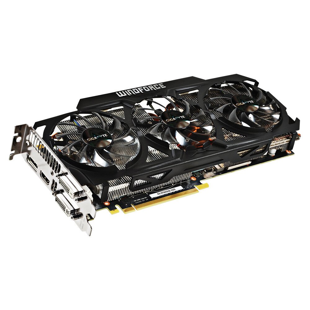 Keeping the same 450W Cooling capacity using only 2 slots, the New WINDFORCE 3X 450W cooling system is equipped with two 8mm and four 6mm cooper heat-pipes , inclined fans, and GIGABYTE "Triangle Cool" technology. This not only provides an effective heat dissipation capacity but GPU Boost 2.0 technology also enables higher performance due to a lower temperature.