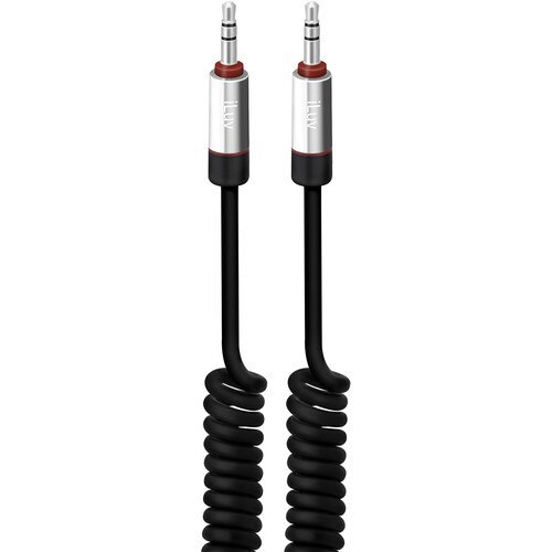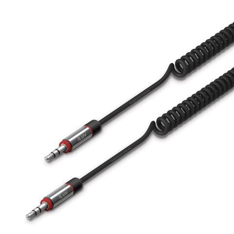 Durable fully extended 6ft long Aux-in audio coiled cable with a nickel-plated 3.5mm plug