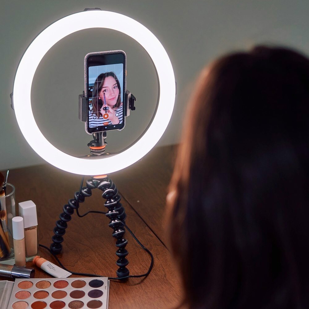 Designed to provide flattering coverage and a fun catch light in the eye when vlogging or capturing selfies, the Beamo Ring LED Light 12” pairs perfectly with JOBY supports, phone mounts, and microphones to knock out some epic content (sold separately).