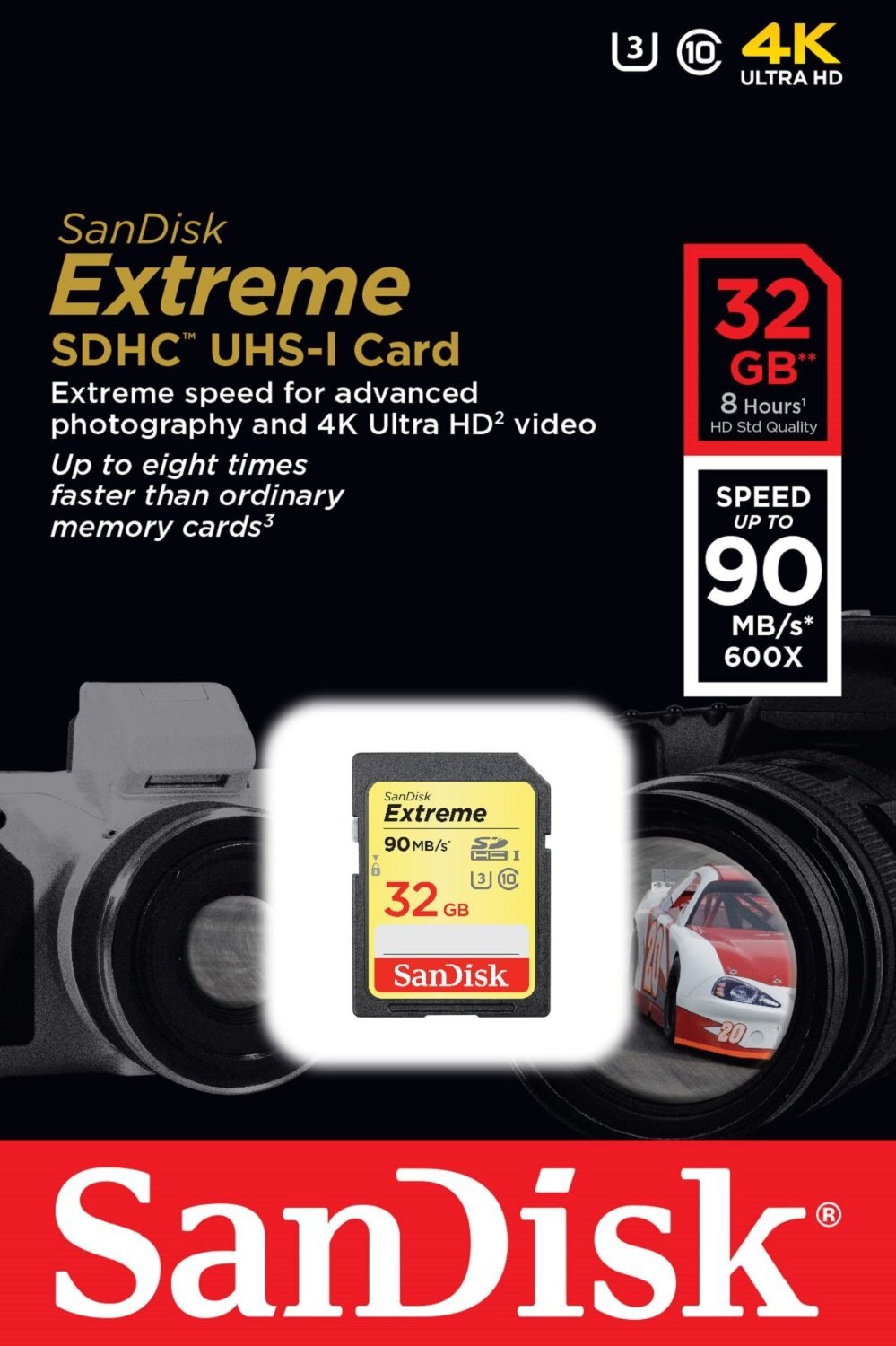 With UHS Video Speed Class 30 (V30) for 32GB-256GB cards and UHS Speed Class 3 (U3) ratings, the SanDisk Extreme SDHC and SDXC UHS-I Cards let you capture uninterrupted 4K UHD and Full HD video. This makes it ideal for recording outdoor adventures, weekend trips, or sporting events without dropping frames.