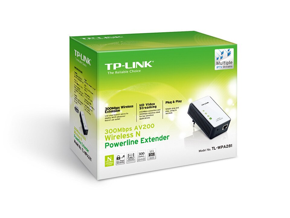 With advanced HomePlug AV technology, TL-WPA281 provides users with stable, high-speed data transfer rates of up to 200Mbps on a circuit length of up to 300 meters. Together with its built-in Qos and powerful AES encryption, the TL-WPA281 is a great choice for a whole home solution to connect all network compatible devices--from computers and game consoles, to set-top boxes for IPTV, printers and NAS.