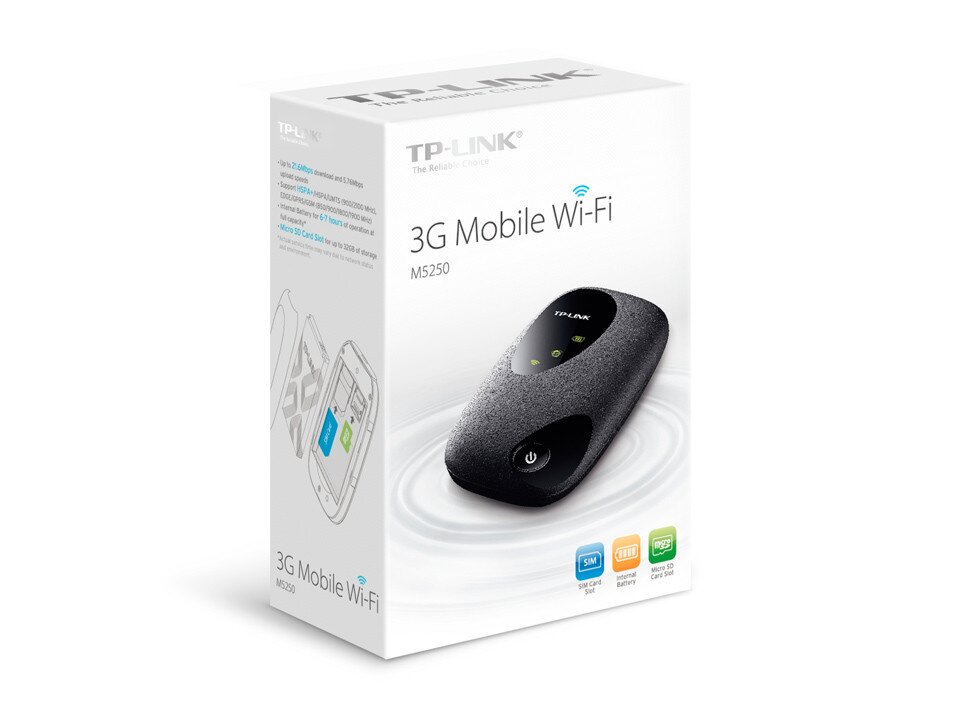 TP-LINK's M5250 is at the forefront of wireless 3G sharing. Equipped with an internal WCDMA supported 3G modem, simply insert a SIM card and a Wi-Fi hotspot is instantly created - No other bulky devices required.